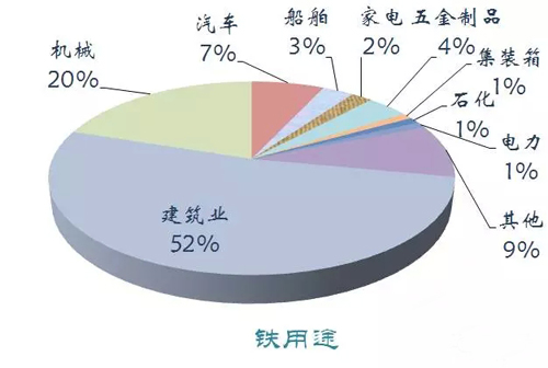 鋼鐵是工業(yè)化過程中最重要的原材料之一,我國消費(fèi)鋼鐵最主要的部門是建筑行業(yè)。2014年我國鐵礦石儲量230億噸,產(chǎn)量15億噸。