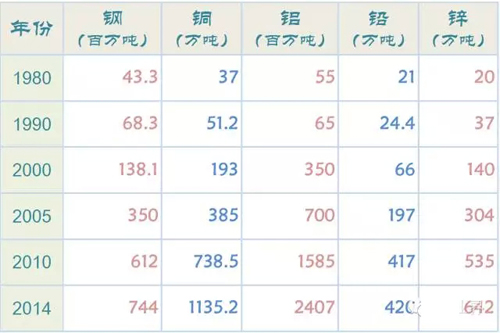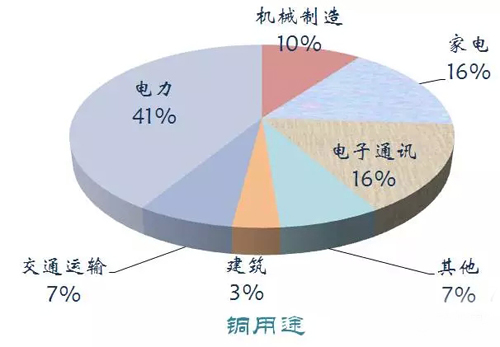銅是被廣泛應(yīng)用在電力、家電、機(jī)械、建筑、交通、電子通訊等領(lǐng)域。2014年中國銅儲量3000萬噸,產(chǎn)量162萬噸,消費(fèi)1135萬噸。