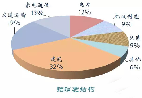 鋁主要應(yīng)用于建筑、交通運(yùn)輸、家電通訊、電力、包裝和機(jī)械制造等領(lǐng)域。2014年我國鋁土礦儲量3250萬噸,產(chǎn)量2330萬噸,原鋁消費(fèi)量2406萬噸。