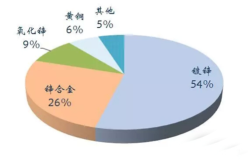 中國鋅消費(fèi)超過50%用于鍍鋅。2014年我國鋅儲量4300萬噸,產(chǎn)量500萬噸,消費(fèi)642萬噸。