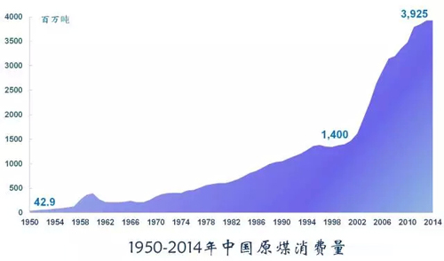 煤炭是中國最重要的能源礦產(chǎn),在能源消費(fèi)中占比一直高達(dá)70%左右,居絕對主導(dǎo)地位,對中國經(jīng)濟(jì)發(fā)展具有至關(guān)重要的意義。1950年-2014年,中國原煤消費(fèi)量激增90倍以上。
