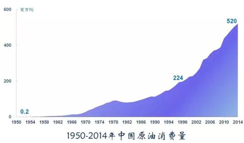 石油在中國一次性能源消費(fèi)中占比20%,僅次于煤炭,但是是有對國防安全具有重大的戰(zhàn)略意義,是必不可少的戰(zhàn)略資源。中國石油消費(fèi)與日俱增,從50年代的24萬噸激增至2014年的5.2億噸,是建國時(shí)的2600倍。