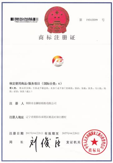 朝陽(yáng)市金麟鐵精粉有限公司“企業(yè)徽標(biāo)”商標(biāo)注冊(cè)成功,是公司品牌建設(shè)的重要里程碑,這標(biāo)志著我公司開(kāi)始走上品牌發(fā)展之路,真正建立起了走向市場(chǎng)的“名片”,也是公司信譽(yù)和質(zhì)量的象征,將促進(jìn)我們不斷提升服務(wù)水平和商品質(zhì)量,公司一直以“開(kāi)拓創(chuàng)新,精益求精,精細(xì)管理,優(yōu)質(zhì)服務(wù)”的質(zhì)量方針,為創(chuàng)造強(qiáng)勢(shì)品牌和公司可持續(xù)發(fā)展奠定堅(jiān)實(shí)基礎(chǔ)。